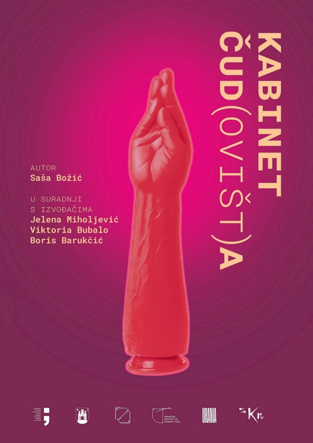Kabinet čud(ovišt)a, novi autorski projekt Saše Božića u produkciji kazališne skupine de facto premijerno će biti izveden u nedjelju, 13. prosinca u 20 sati u dvorane udruge Urania. Reprizne projekcije uslijedit će u ponedjeljak i utorak, 14. i 15. prosinca. Predstava je inspirirana romanom U vrtu čudovišta francuske spisateljice Leile Slimani te dramskim tekstom Dimitrija Kokanova Pornscape, a izvode je Jelena Miholjević, Viktoria Bubalo i Boris Barukčić.