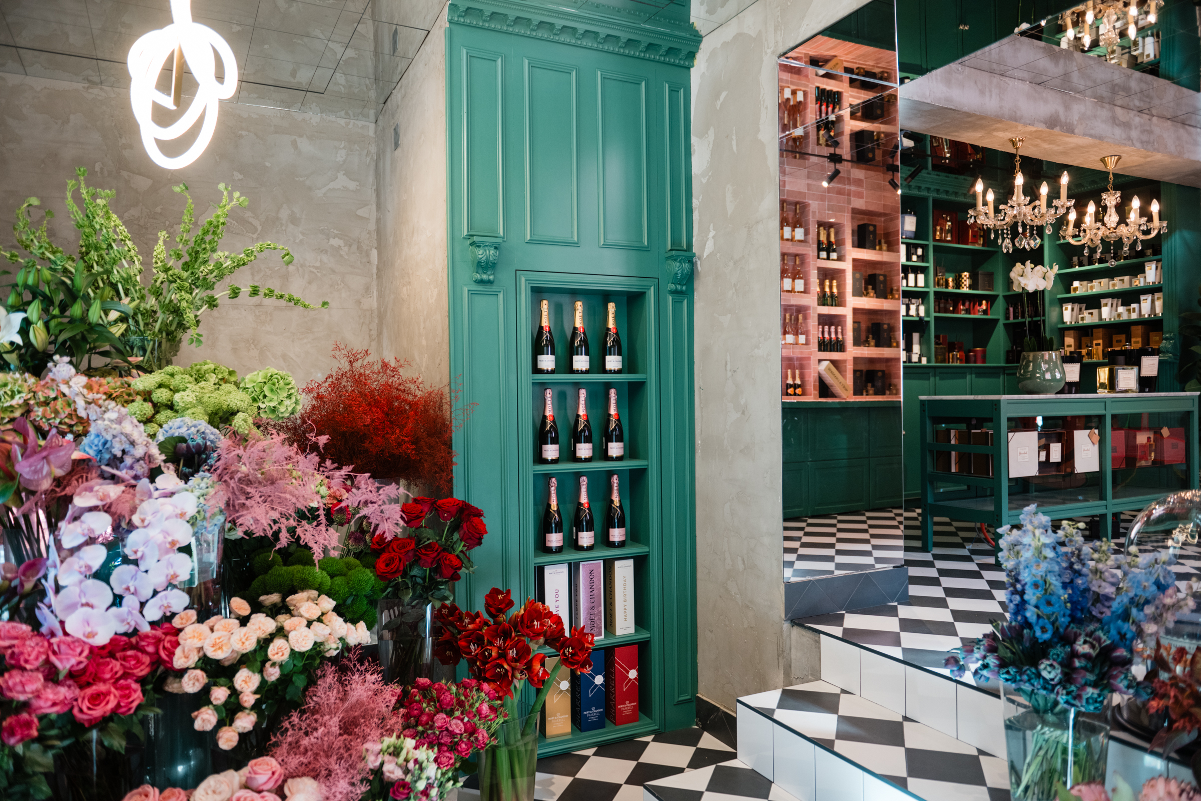 Osim cvijeća, ondje se mogu pronaći mirisi za dom Atelier Rebul, nakit Borboleta, vaze, pjenušci i šampanjci poput Moëta i Whispering Angela.