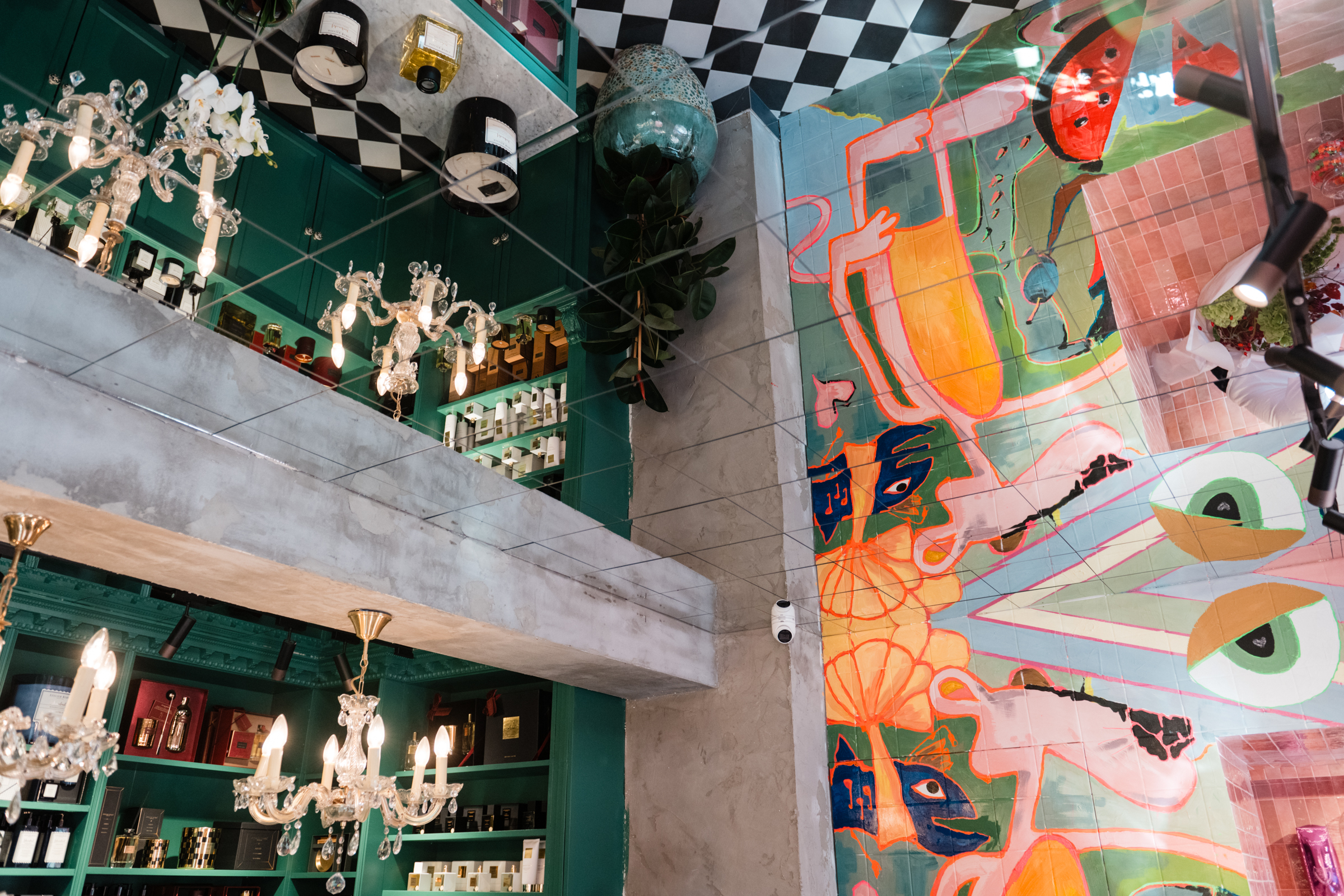 Novi prostor, koji danas zauzima više od šezdeset kvadrata, uređen je s posebnom pažnjom. „Željeli smo da novi prostor zadrži toplinu doma, da kad netko uđe, ne osjeti dućan, nego osjećaj,“ objašnjava Iva. Za dizajn se pobrinula Nikolina Pišek, koja je, kako kaže, savršeno razumjela njihov senzibilitet. „Zamislila ga je kao spoj stare engleske apoteke i oksfordske knjižnice – toplog, nostalgičnog i profinjenog prostora.“ Svaki detalj nosi priču – od ružičastog kutka koji je željela Iva do ogledala na stropu koje je poželio Ante.
