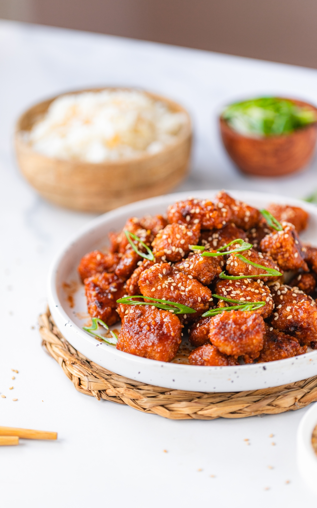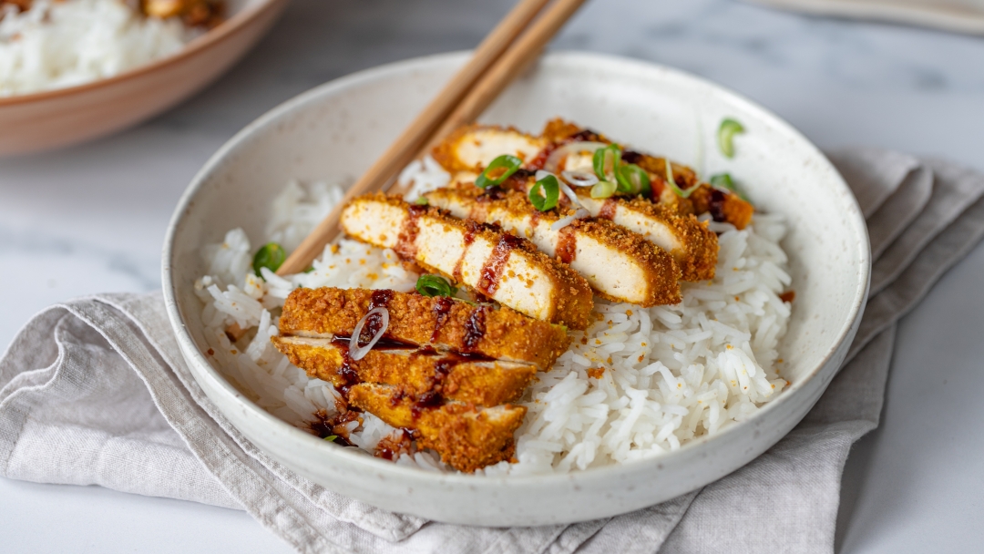 - Poslužite hrskavi tofu uz kuhanu basmati rižu, umak po želji i mladi luk.