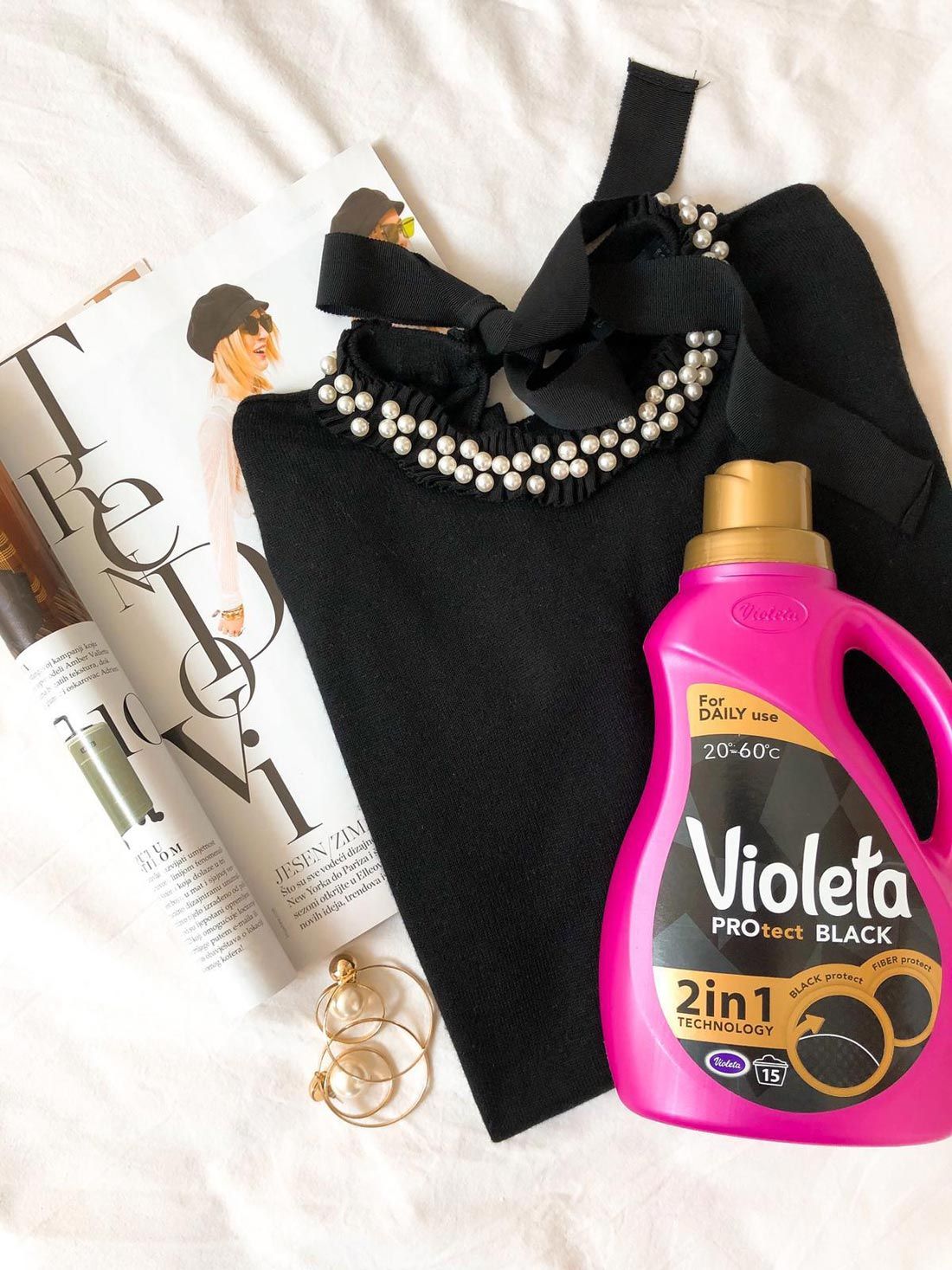 Violeta Protect Black deterdžent sadrži specijalno razvijenu formulaciju koja je sastavljena od proteina celulaze za zaglađivanje tkanina i polimera za čuvanje boja.