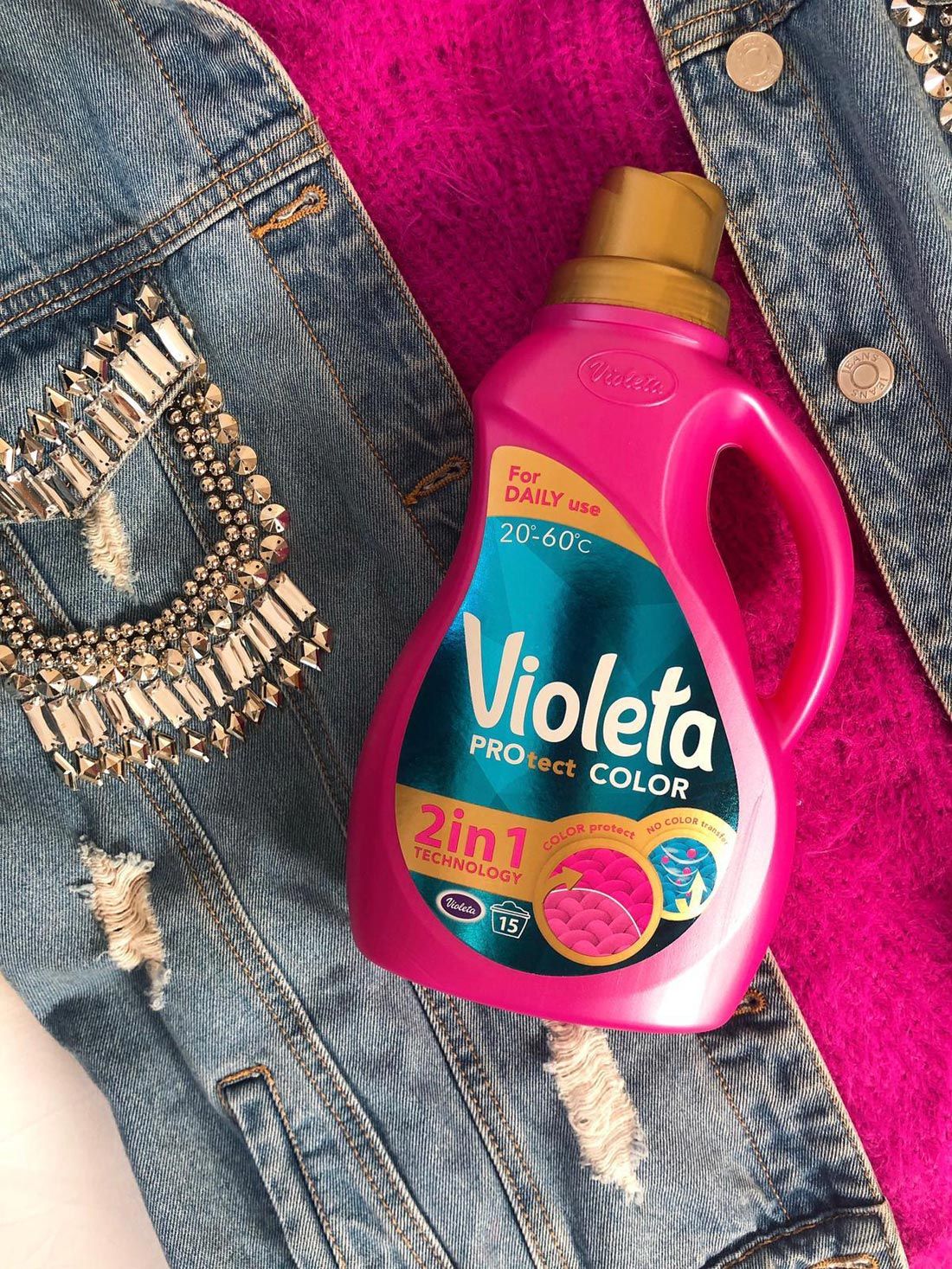 Nova Violeta kolekcija deterdženata za rublje njeguje tkanine pomoću 2in1 technology, tako što kombinira snagu dvaju aktivnih sastojaka: proteina za zaglađivanje tkanina i inhibitora za prijenos boja.