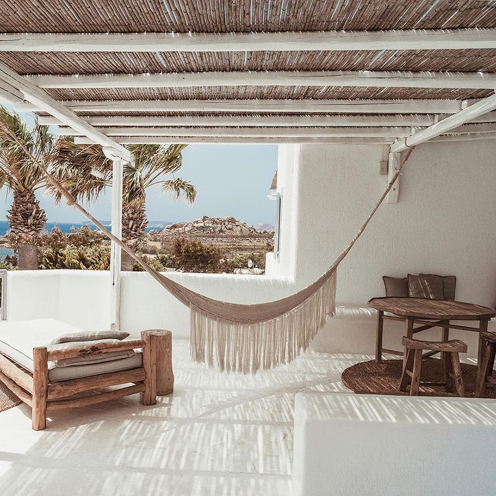 Estetika je prozračna i prostrana, odajući počast klasičnoj grčkoj arhitekturi. Tradicionalna grčka izrada je svugdje prisutna, od tkanih stolica do pamučne matelase.