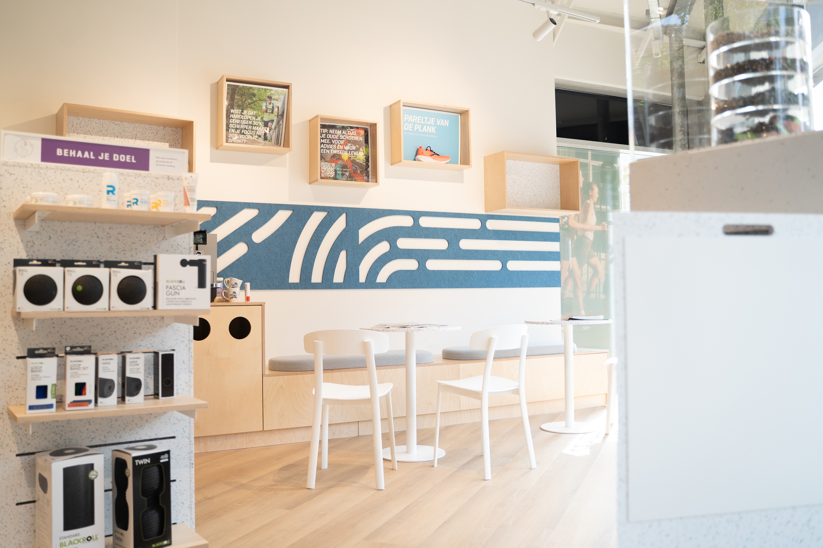 Kretanje je srž koncepta specijalizirane trgovine za trčanje. Željeli smo da se kupci osjećaju slobodno i lako se kreću kroz prostor pa smo osmislili tzv. kružnu komunikaciju i posebno mjesto za isprobavanje tenisica. Pokret smo koristili i kao apstraktni motiv u dizajnu, primjerice u uzorku recikliranog filca na zidu, koji dočarava energiju i dinamiku trčanja, dodaju iz SWOODA.