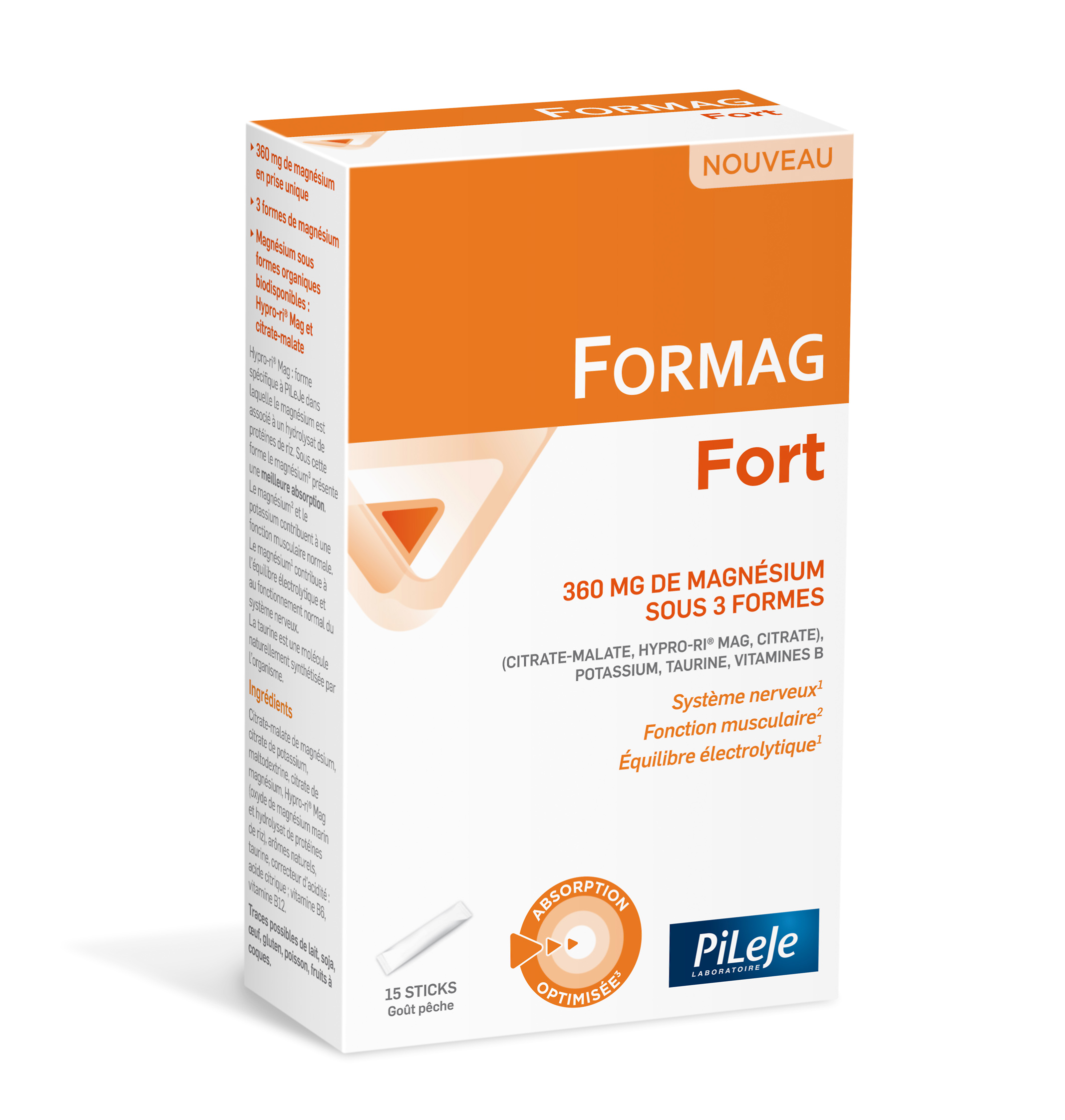 - Formag Fort (PiLeJe) kombinira tri oblika magnezija, kalij citrat te vitamine B6 i B12 i namijenjen je ženama izloženima stresu ili hormonalnim oscilacijama. Magnezij i kalij doprinose normalnoj funkciji mišića i živčanog sustava, čime posredno podržavaju ravnotežu kortizola i stabilnost ciklusa. Patentirani oblik Hypro-ri® Mag osigurava visoku apsorpciju i učinkovitost. Ključna uloga je smanjenje učinaka stresa i podrška stabilnosti ciklusa kroz bolju regulaciju živčano-hormonalne osovine.