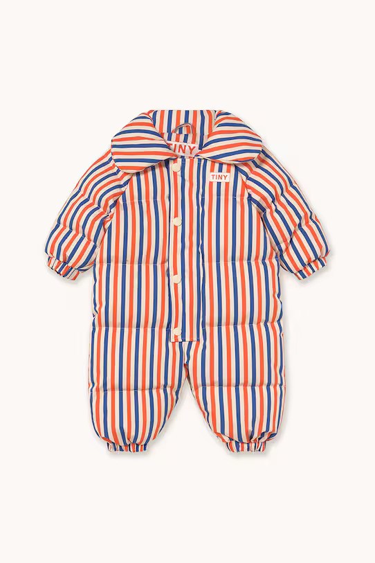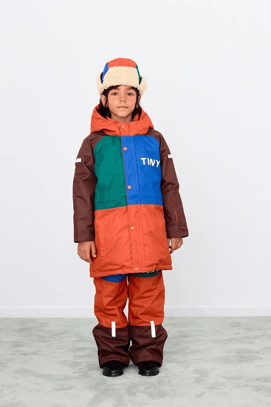Tiny Cottons ove sezone ide maksimalno razigrano, nema jednobojnih ni klasičnih komada. Sve jakne dolaze u veselim kombinacijama boja, od širokih ili tanjih pruga, do blokova u tri ili četiri žive nijanse koje momentalno podižu raspoloženje. Još jedan razlog zbog kojeg je nova kolekcija posebno šarmantna jest taj što većina modela dječjih jakni dolazi i u verziji baby kombinezona. To znači da braća i sestre mogu nositi matching outfite, savršeno za obiteljske izlaske i zimske fotografije.