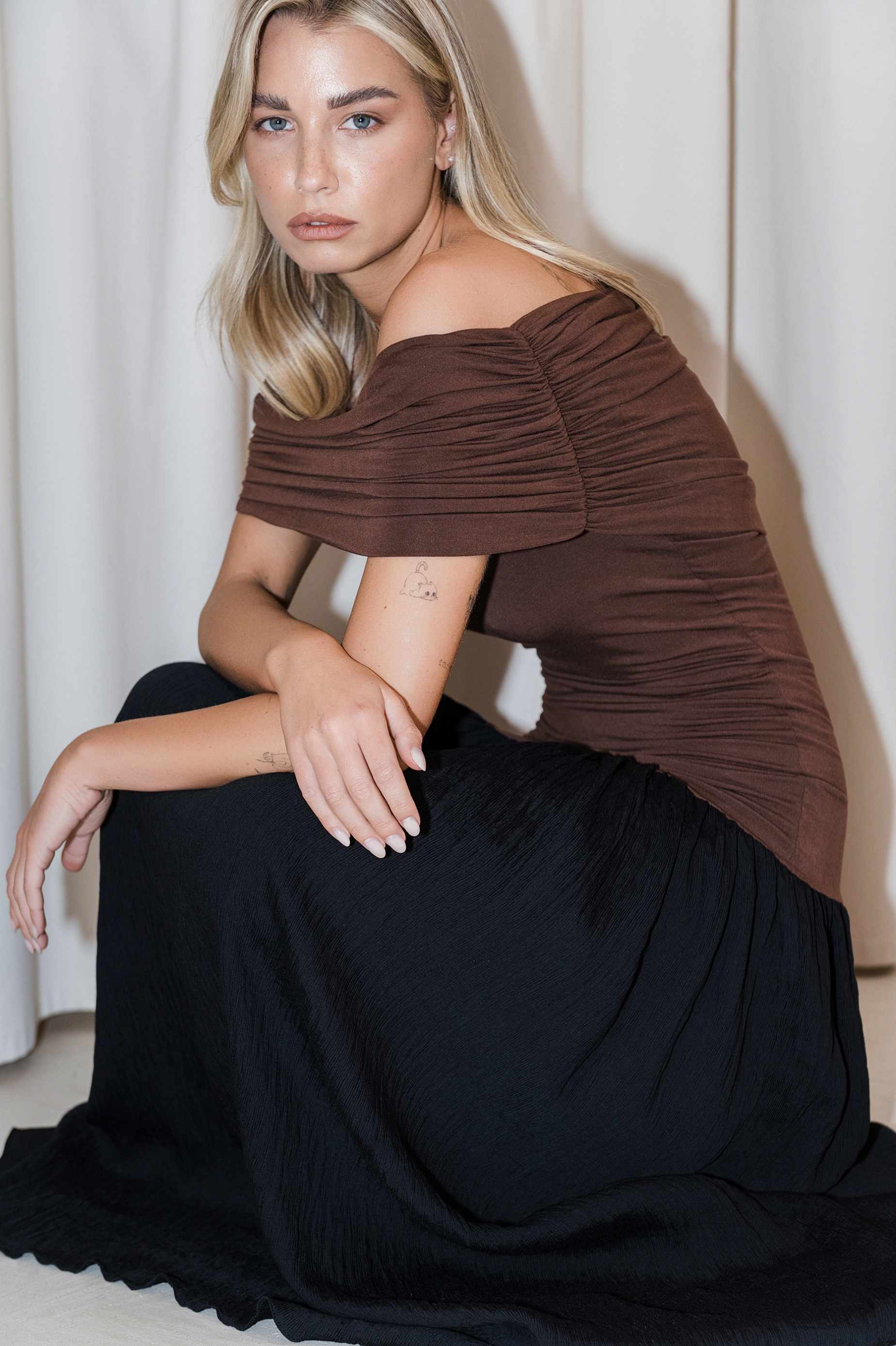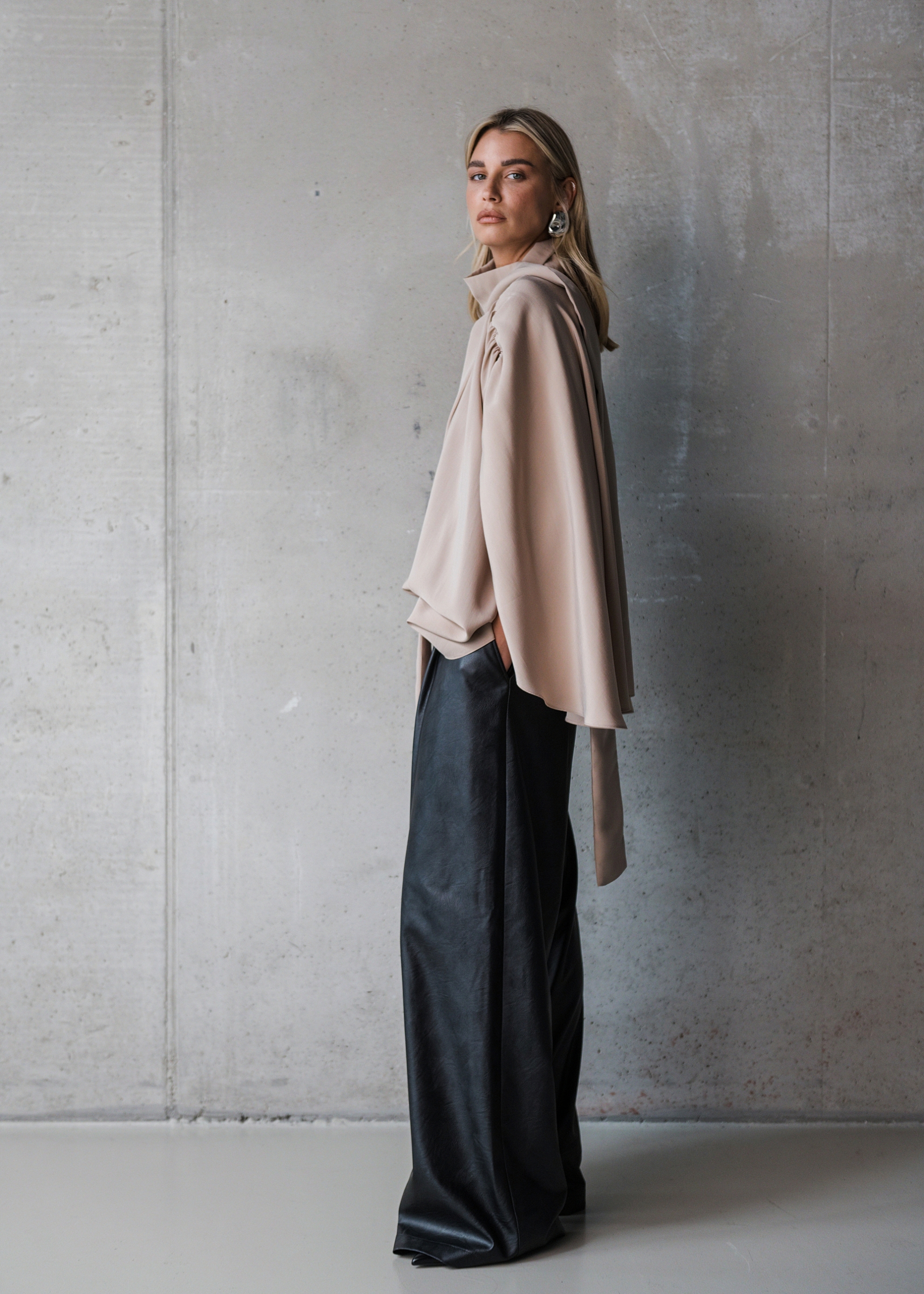 Između svečanog i ležernog, svoje mjesto pronalaze i bluze – poput Kael, Kira i Nex modela – koje spajaju strukturu i lakoću u savršenoj ravnoteži. Njihova forma prati tijelo, dok tekstura materijala, od brušenog japanskog pamuka do viskoze, stvara osjećaj profinjene mekoće i lakoće pokreta.