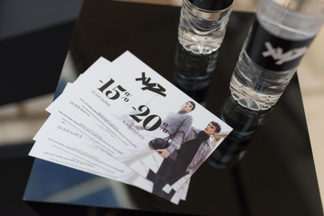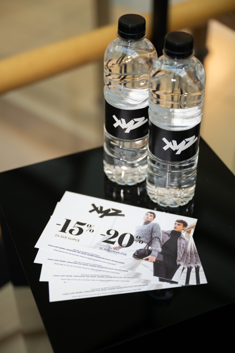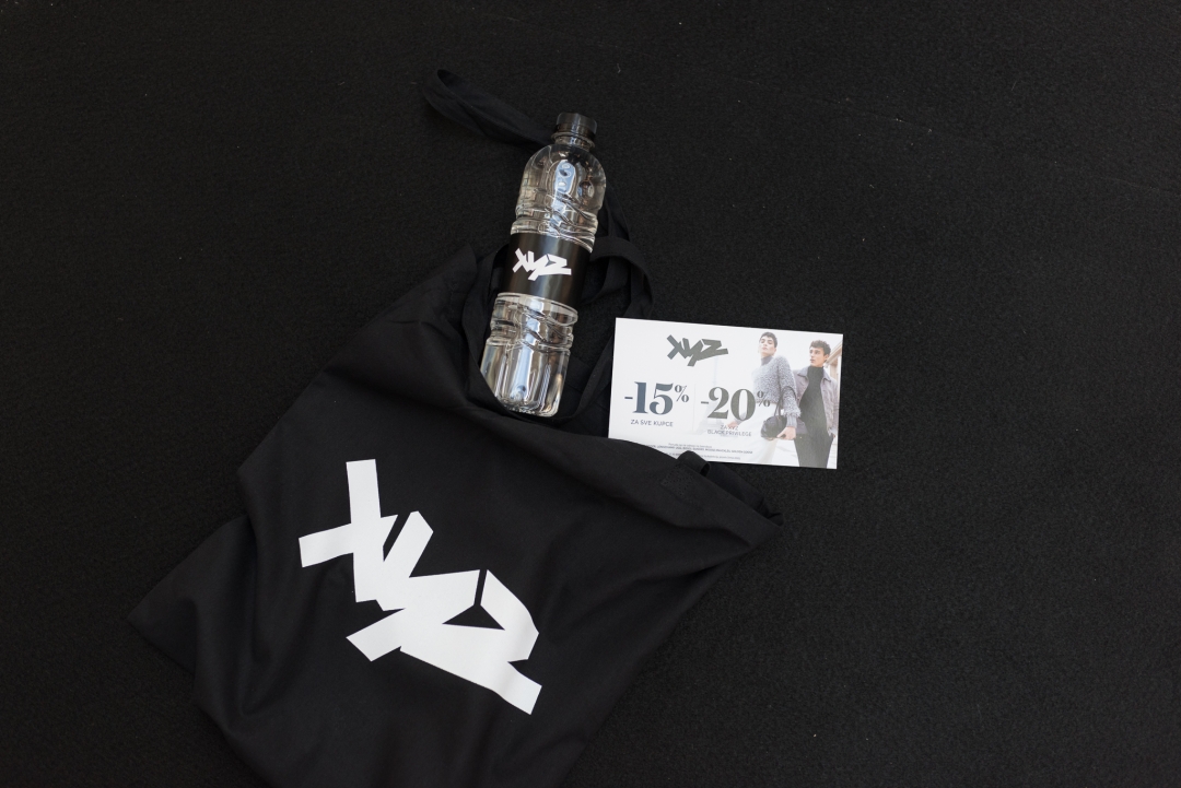 Kad smo kod detalja, goodie bag je bio jednostavan, ali baš efektan. U platnenoj vrećici s XYZ potpisom nalazila se brendirana XYZ voda i kupon s 15% popusta na novu jesen/zima 2025 kolekciju. Savršen podsjetnik da je vikend idealan za posjet XYZ-u i jesenski update garderobe.